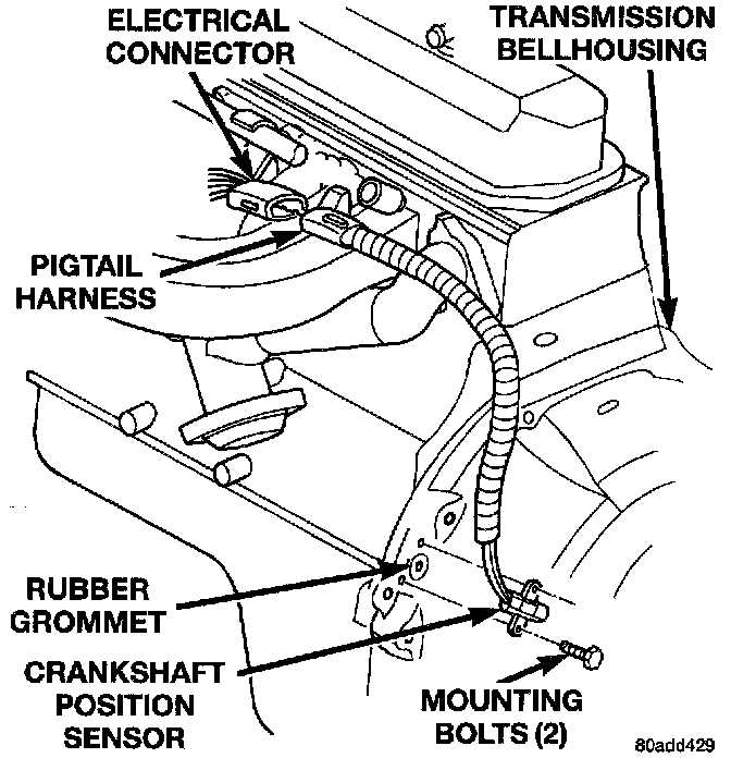 The crankshaft position sensor is mounted to the transmission bellhousing at the left/rear side of the engine block.