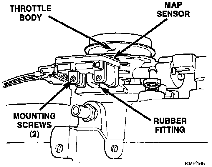 Idle Air Control Passage Inlet, Idle Air Control Module, Mounting Bolts, Map Sensor, Intake Manifold Air TEMP Sensor: