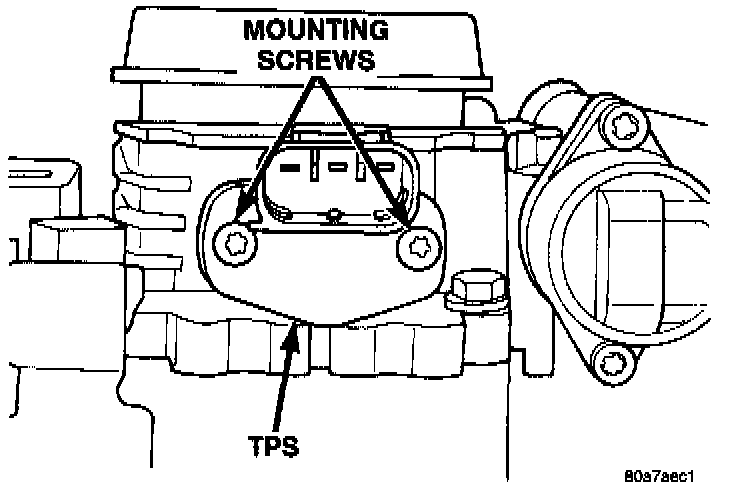 The throttle shaft end of the throttle body slides into a socket in the TPS. The TPS must be installed so that it can be rotated a few degrees. (If the sensor will not rotate, install the sensor with the throttle shaft on the other side of the socket tangs). The TPS will be under slight tension when rotated.