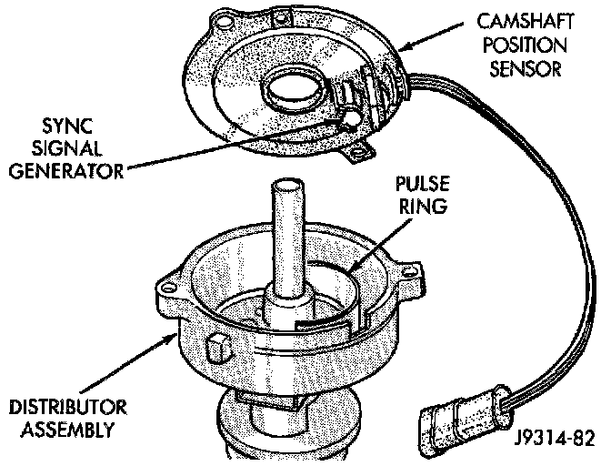 All engines are equipped with a camshaft driven mechanical distributor containing a shaft driven distributor rotor. These distributors are equipped with an internal camshaft position (fuel sync) sensor. This sensor provides fuel injection synchronization and cylinder identification.