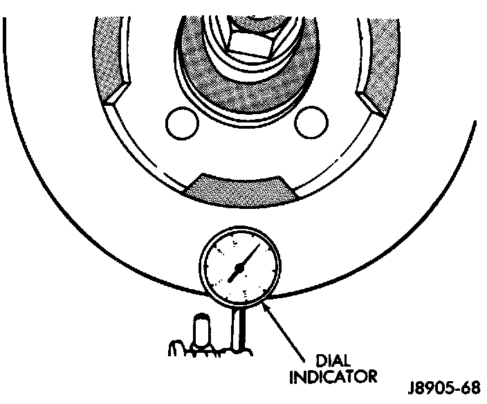 Check rotor lateral runout with dial indicator C-3339. Excessive lateral runout will cause brake pedal pulsation and rapid, uneven wear of the brake shoes. Position the dial indicator plunger approximately 25.4 mm (1 inch) inward from the rotor edge. Maximum allowable rotor runout is 0.102 mm (0.004 inch).