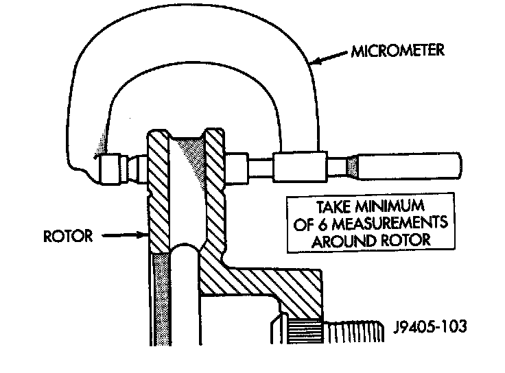 Position the micrometer approximately 25.4 mm (1 inch) from the rotor outer circumference for each measurement.