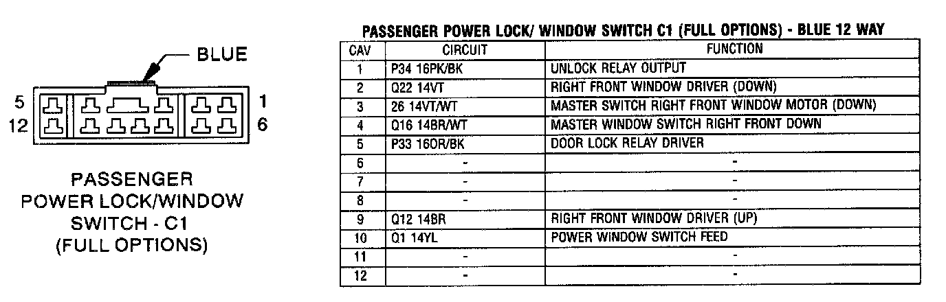 Passenger [1][2]Power Lock/Window Switch - C1 (Full options) - Blue 12 Way
