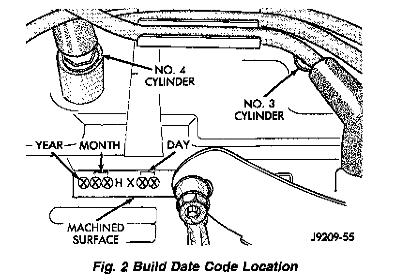 The engine Build Date Code is located on a machined surface on the right side of the cylinder block between the No.3and No.4 cylinders.