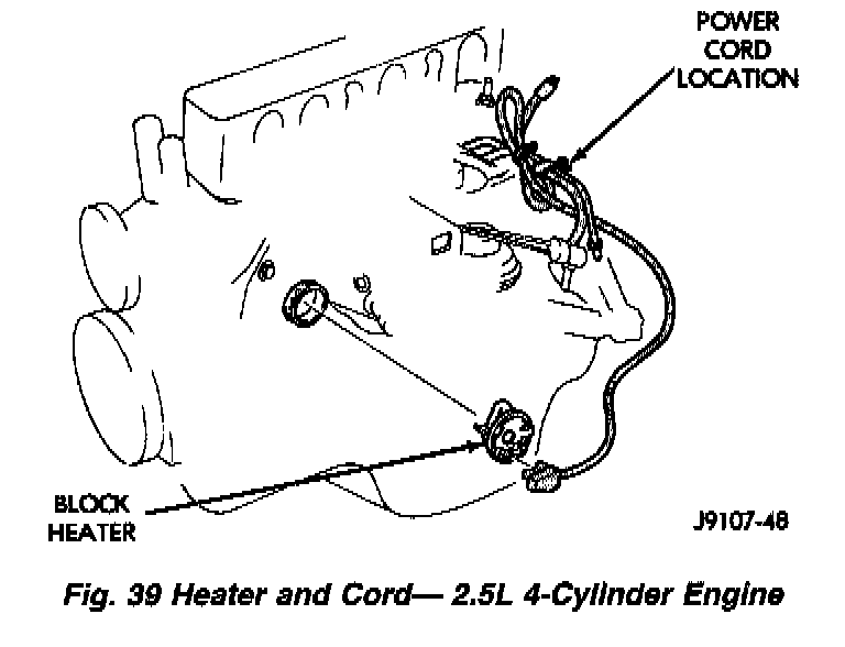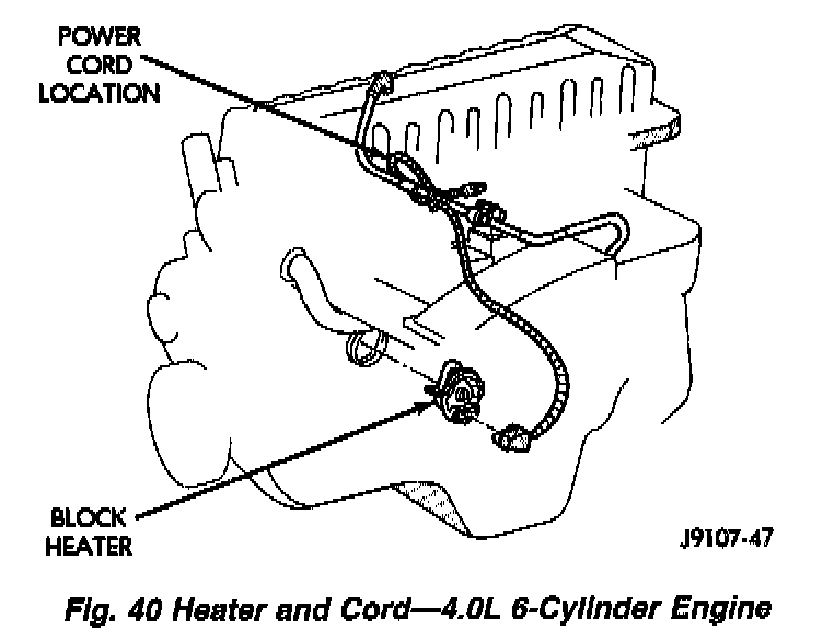 Refer to correct illustration (Fig. 39) (Fig. 40) when servicing block heater.