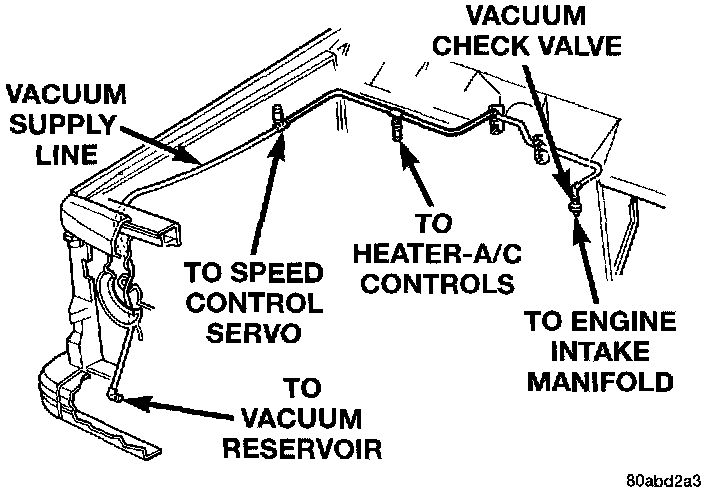 2. Note the orientation of the check valve in the vacuum supply line for correct reinstallation.