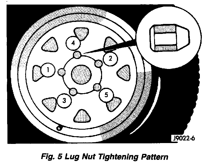 To install the wheel, first position it properly on the mounting surface. All wheel nuts should then be tightened just snug. Gradually tighten them in sequence to the proper torque specification. Never use oil or grease on studs or nuts.