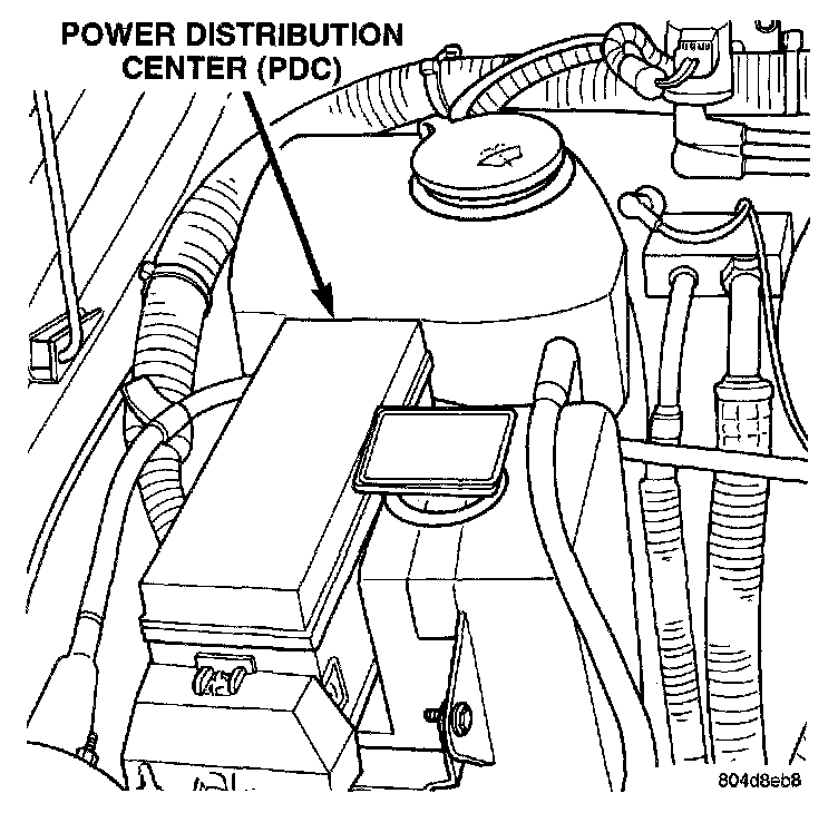 A 12 volt signal at this input indicates to the PCM that the ASD has been activated. The ASD relay is located in the Power Distribution Center (PDC). The PDC is located in the engine compartment. Refer to label on PDC cover for relay location. The relay is used to connect the oxygen sensor heater elements, ignition coil and fuel injectors to 12 volt + power supply.