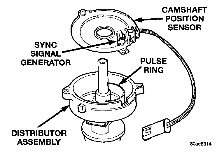 A sync signal is provide by the Camshaft Position Sensor located in the distributor. The sync signal from this sensor works in conjunction with the Crankshaft Position Sensor to provide the Powertrain Control Module (PCM) with inputs. This is done to establish and maintain correct injector firing order.