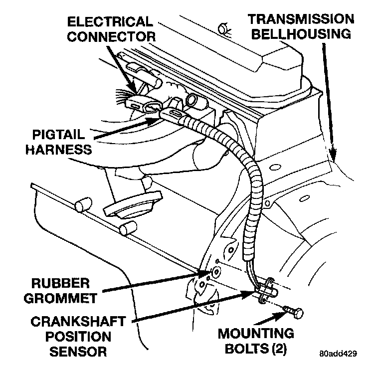 This sensor is a hall effect device that detects notches in the flywheel (manual transmission) or flexplate (automatic transmission).