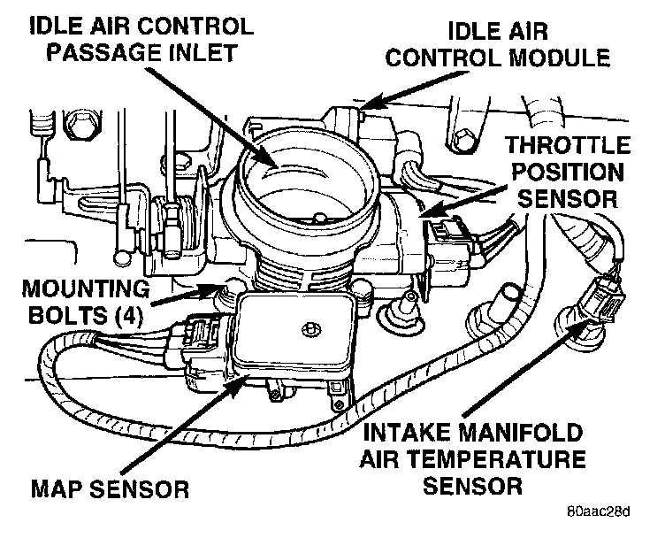 The TPS is mounted on the throttle body. The TPS is a variable resistor that provides the Powertrain Control Module (PCM) with an input signal (voltage) that represents throttle blade position. The sensor is connected to the throttle blade shaft. As the position of the throttle blade changes, the resistance of the TPS changes.