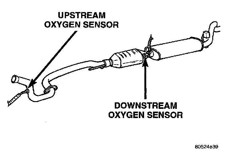 The downstream heated oxygen sensor is located near the outlet end of the catalytic convertor. The downstream heated oxygen sensor input is used to detect catalytic convertor deterioration. As the convertor deteriorates, the input from the downstream sensor begins to match the upstream sensor input except for a slight time delay. By comparing the downstream heated oxygen sensor input to the input from the upstream sensor, the PCM calculates catalytic convertor efficiency