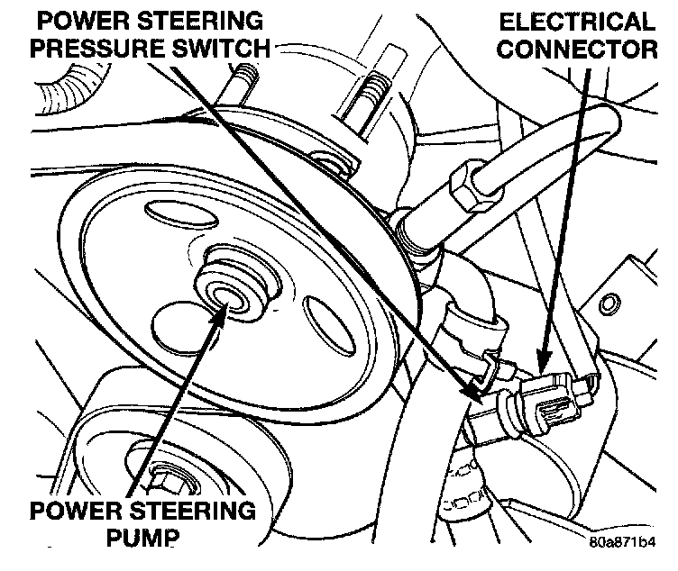 POWER STEERING PRESSURE SWITCHThis switch is not used with 4.0L six-cylinder engines.