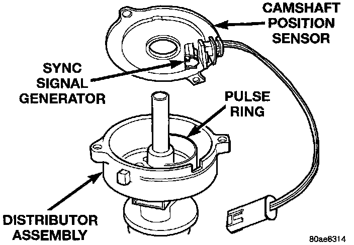 All engines are equipped with a camshaft driven mechanical distributor containing a shaft driven distributor rotor. All distributors are equipped with an internal camshaft position (fuel sync) sensor. This sensor provides fuel injection synchronization and cylinder identification.
