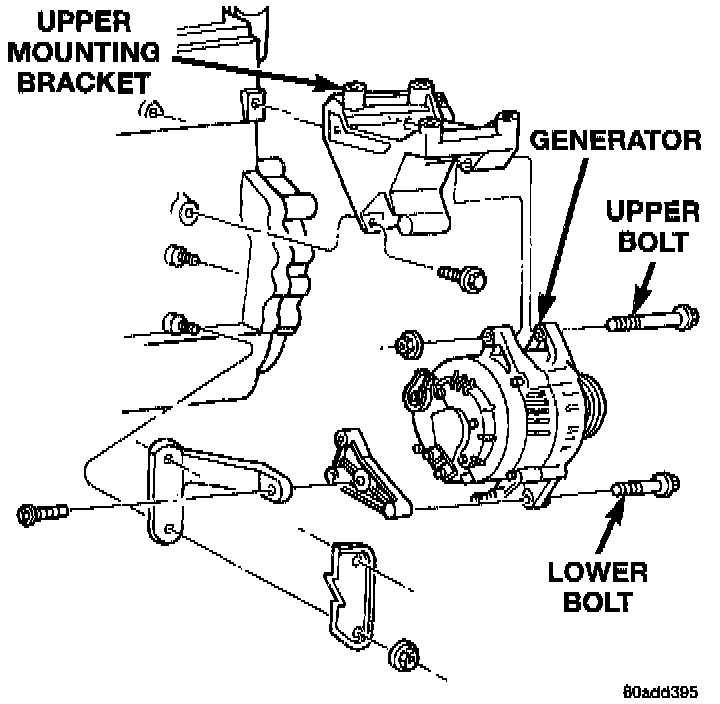 - Generator upper mounting bolt - 55 N.m (41 ft. lbs.) torque.