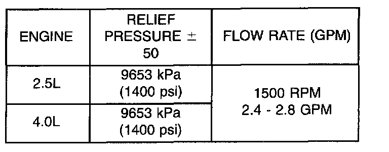 The following procedure is used to test the operation of the power steering system on the vehicle. This test will provide the Gallons Per Minute (GPM) or flow rate of the power steering pump along with the maximum relief pressure. Perform test any time a power steering system problem is present. This test will determine if the power steering pump or power steering gear is not functioning properly. The following pressure and flow test is performed using Power Steering Analyzer Tool Kit 6815 and Adapter Kit 6893.