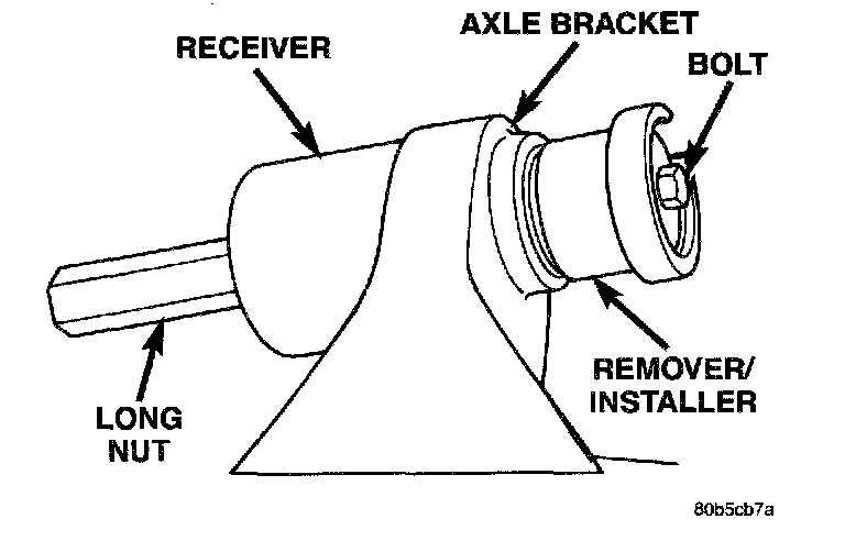 6. Install Long Nut 7603 and tighten nut too pull bushing out of the axle bracket.
