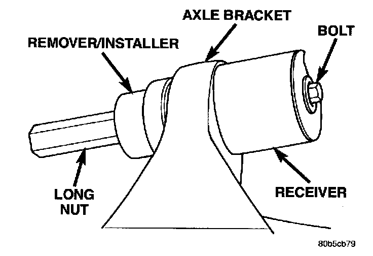 7. Remove nut, bolt, receiver, remover and bushing.