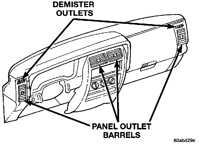 The panel outlet ducts are integral to the instrument panel assembly Refer to Instrument Panel Assembly in Instrument Panel Systems for the procedures.