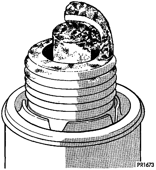 If one or more spark plugs are oil or oil ash encrusted, evaluate engine condition for the cause of oil entry into that particular combustion chamber.