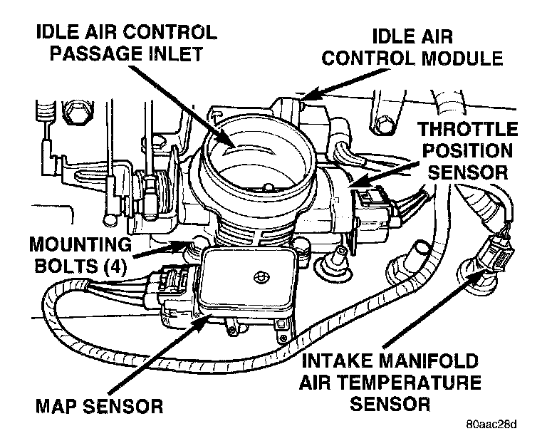The MAP sensor is mounted to the side of the throttle body. An L-shaped rubber fitting is used to connect the MAP sensor to throttle body.