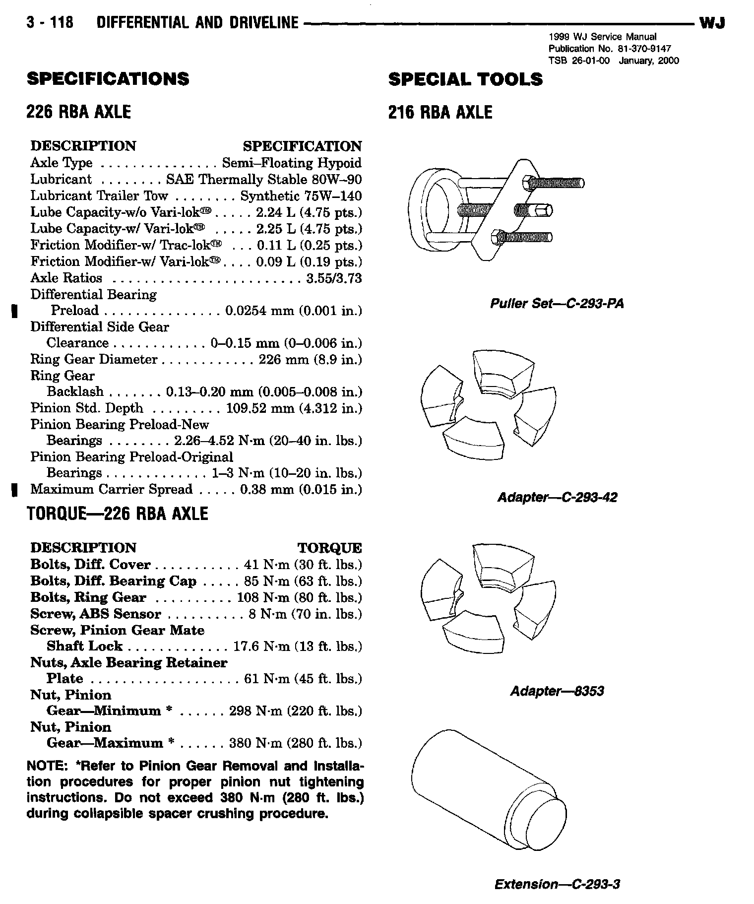 1999 Grand Cherokee Service Manual - Publication Number 81-370-9147