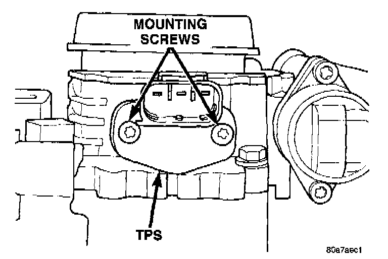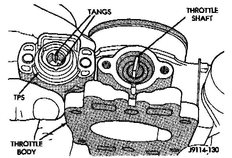 The throttle shaft end of the throttle body slides into a socket in the TPS. The TPS must be installed so that it can be rotated a few degrees. (If the sensor will not rotate, install the sensor with the throttle shaft on the other side of the socket tangs). The TPS will be under slight tension when rotated.