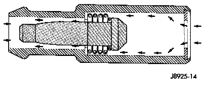When the engine is not operating, or during an engine pop-back, the spring forces the plunger back against the seat. This will prevent vapors from flowing through the valve.