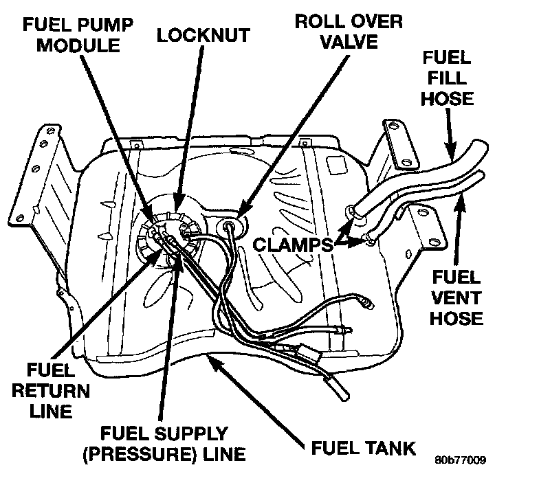 The rollover valve will prevent fuel flow through the fuel tank vent (EVAP) hoses in the event of an accidental vehicle rollover. The EVAP canister draws fuel vapors from the fuel tank through this valve.