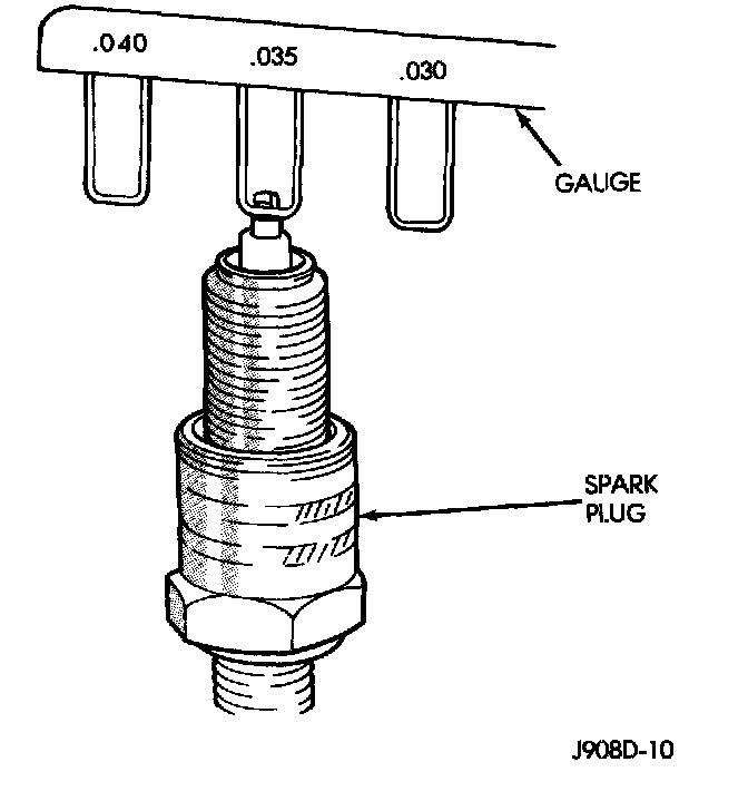 Check spark plug gap with a gap gauge tool. If the gap is not correct, adjust it by bending ground electrode. Never attempt to adjust gap by bending center electrode.
