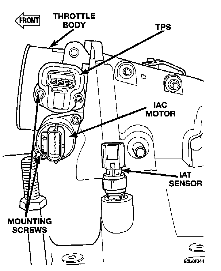 The Intake Manifold Air Temperature (IAT) sensor is installed into the intake manifold plenum near the left side of the throttle body.
