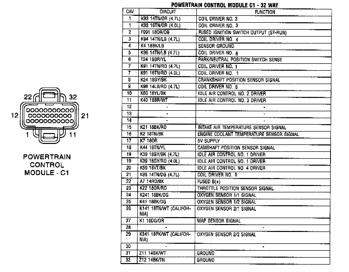 Connector Pin Locations: