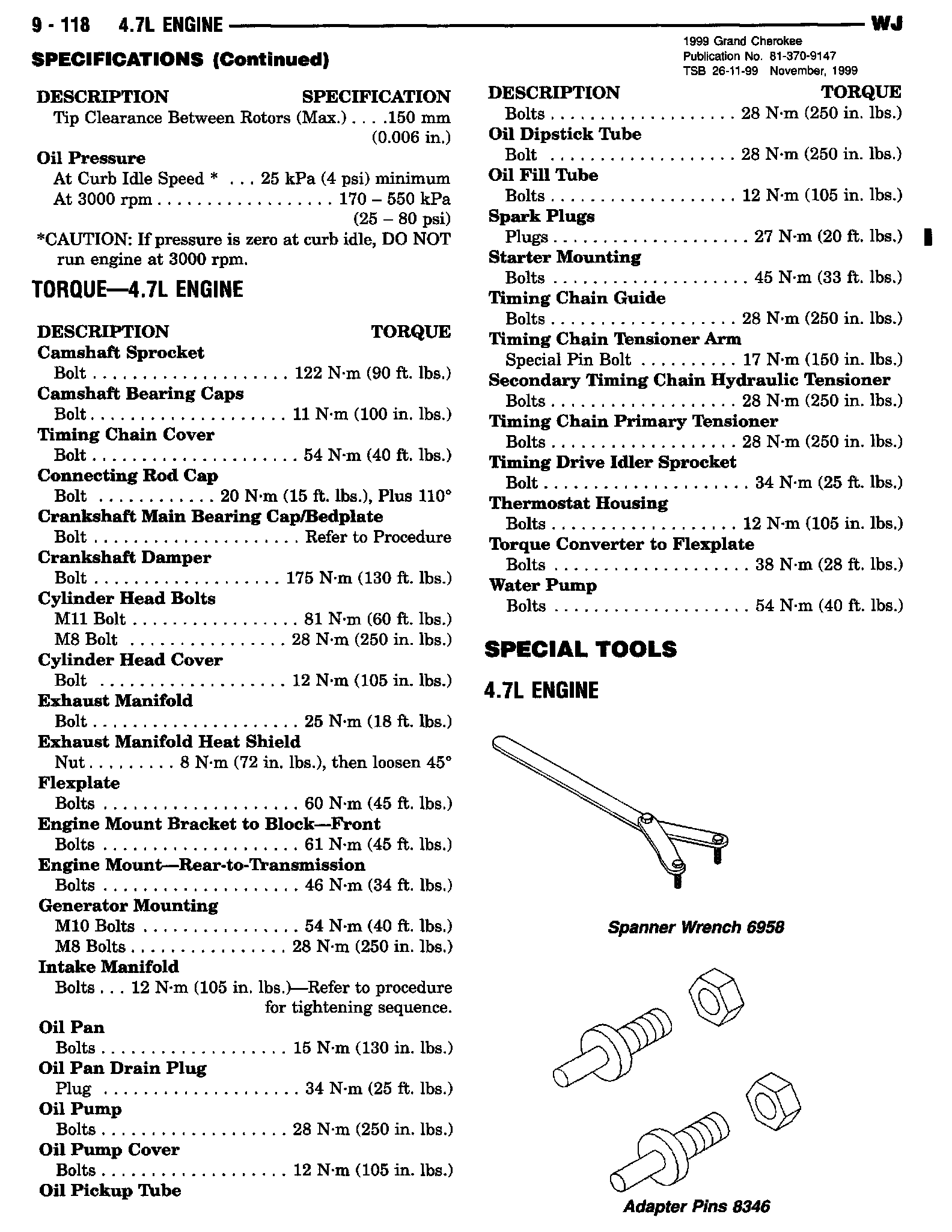 1999 Grand Cherokee Service Manual - Publication Number 81-370-9147