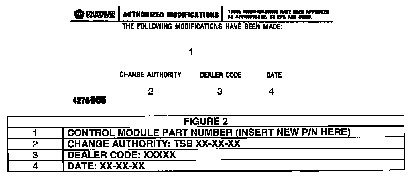 9. Type the necessary information on the "Authorized Software Update Label" p/n 04669020 (Figure 1). Attach the label to the JTEC PCM and cover the label with the clear plastic overlay.