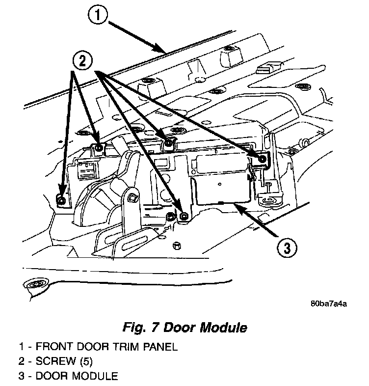 3. Remove the five screws that secure the door module to the back of the front door trim panel.