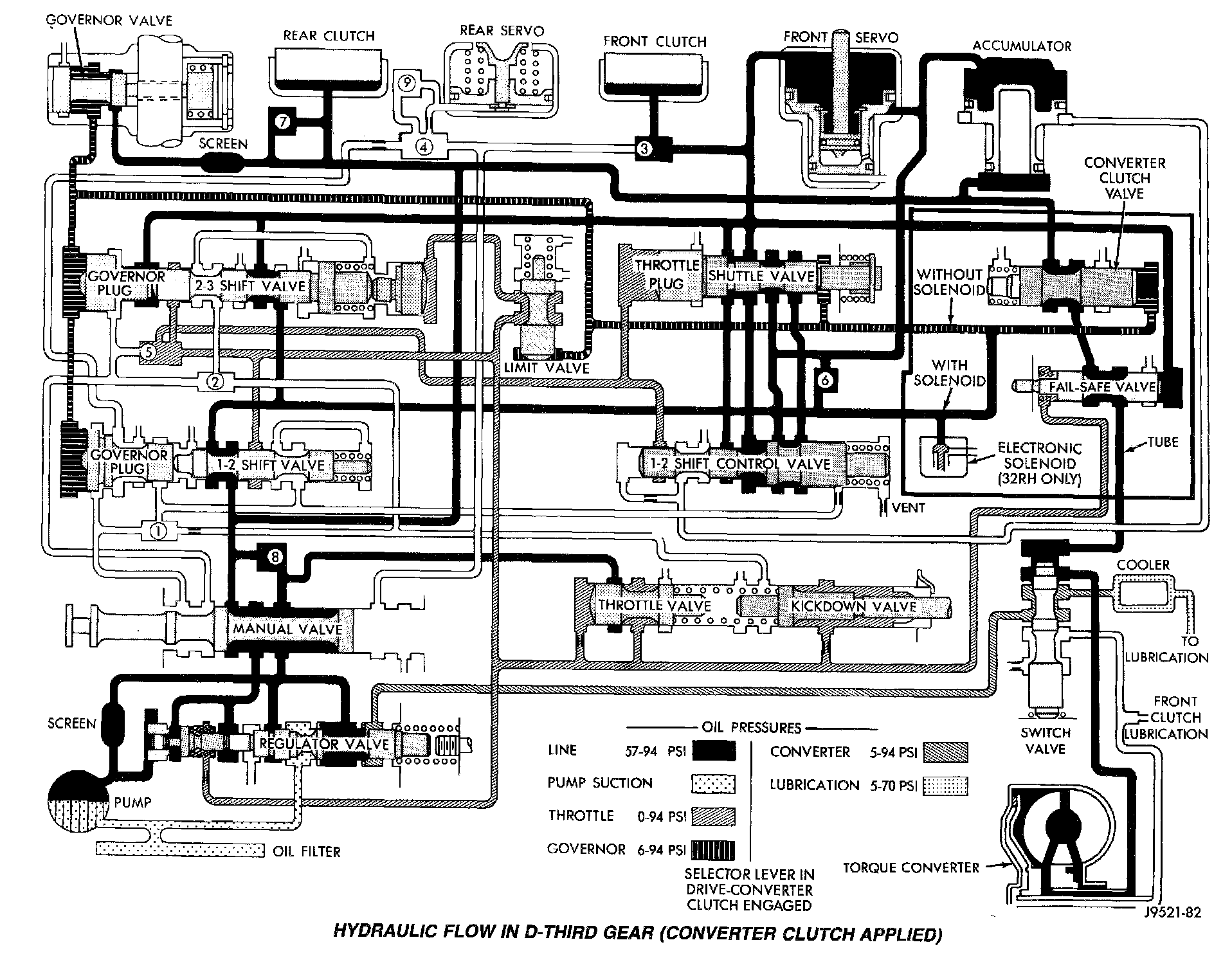 Hydraulic Flow In D-Third Gear (Converter Clutch Applied):