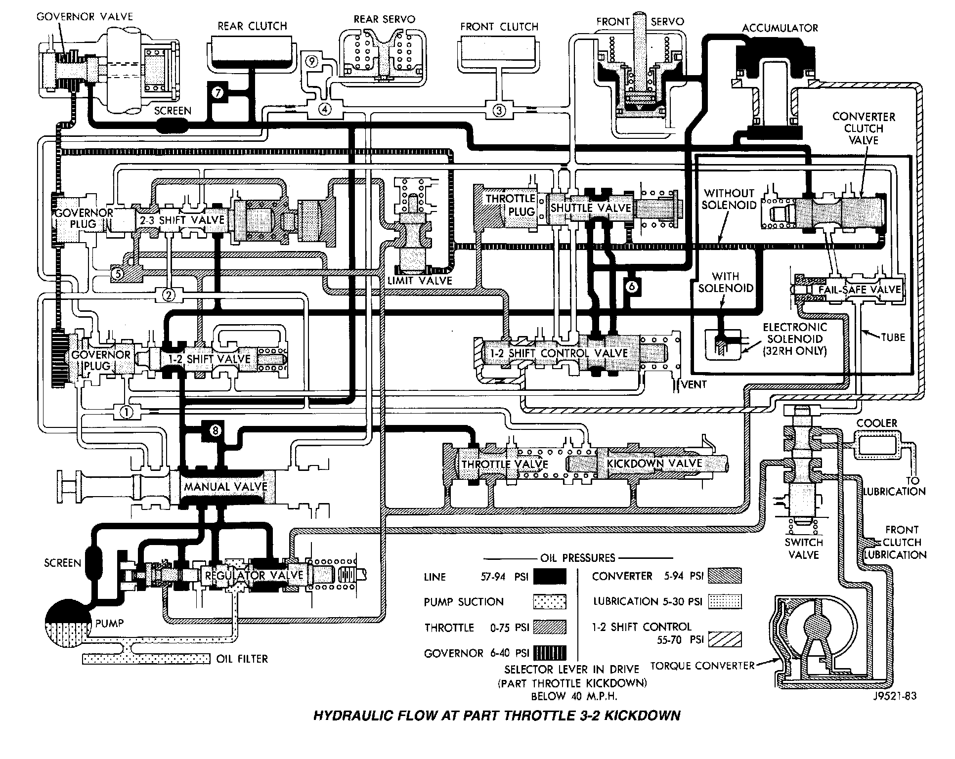 Hydraulic Flow At Part Throttle 3-2 Kickdown: