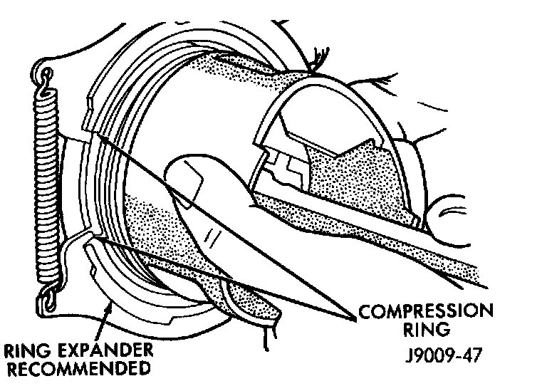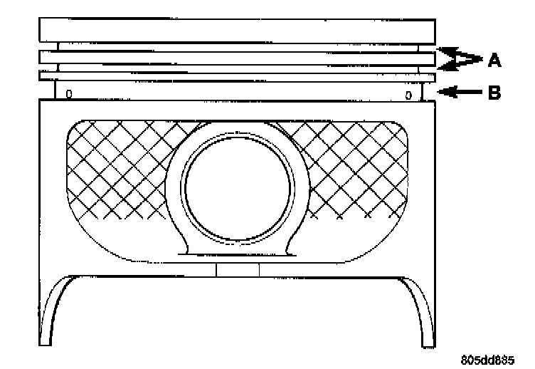 PISTON RING FITTING1. Carefully clean the carbon from all ring grooves. Oil drain openings in the oil ring groove and pin boss must be clear. DO NOT remove metal from the grooves or lands. This will change ring-to-groove clearances and will damage the ring-to-land seating.