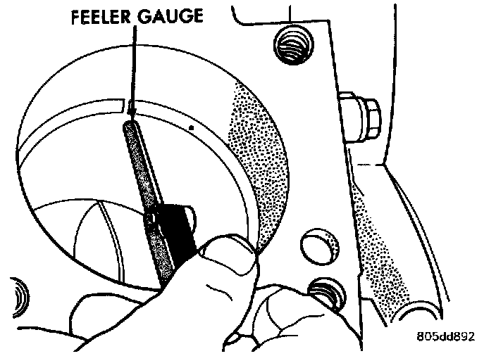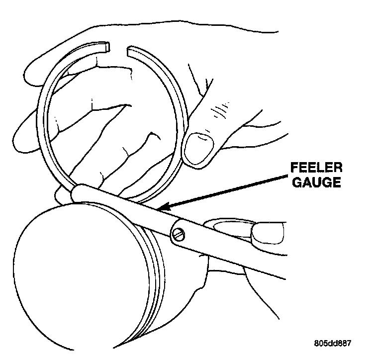4. Place ring in the cylinder bore and push down with inverted piston to position near lower end of the ring travel. Measure ring gap with a feeler gauge fitting snugly between ring ends.