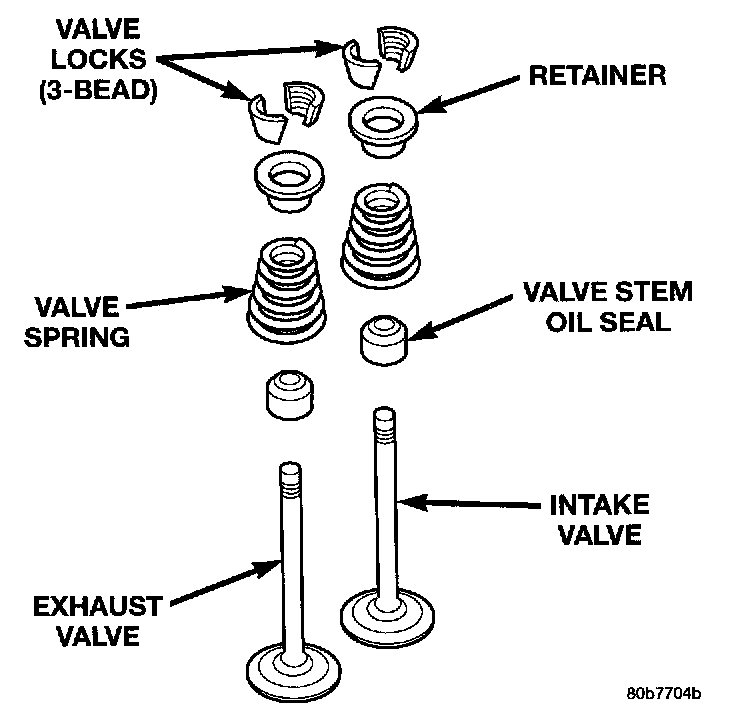 Each valve spring is held in place by a retainer and a set of conical valve locks. The locks can be removed only by compressing the valve spring.