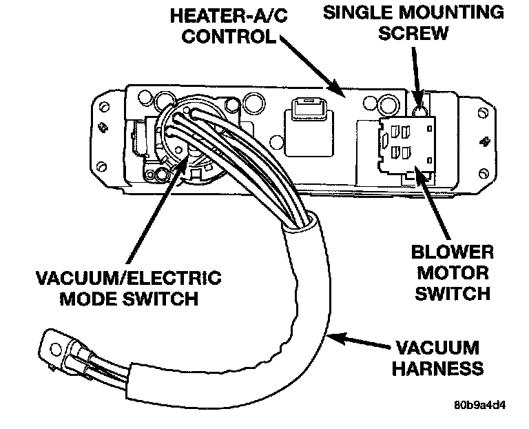 4. Remove the screw that secures the blower motor switch to the rear of the heater-A/C control.