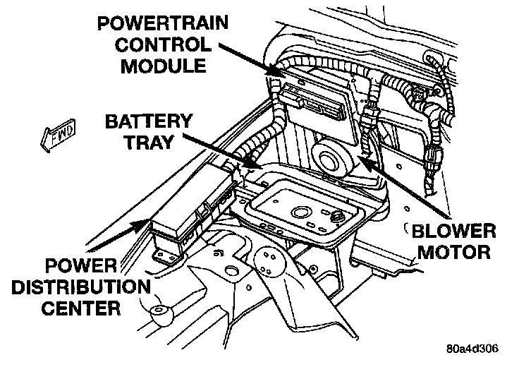 2. Remove the three screws that secure the Powertrain Control Module (PCM) to the mounting bracket on the engine compartment side of the dash panel. Move the PCM away from the blower motor opening in the dash panel.