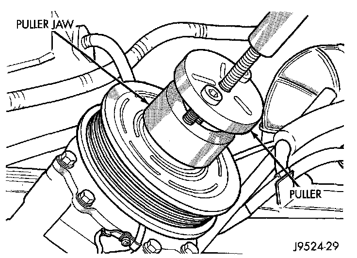 The refrigerant system can remain fully-charged during compressor clutch, pulley, or coil replacement. The compressor clutch can be serviced in the vehicle.REMOVAL