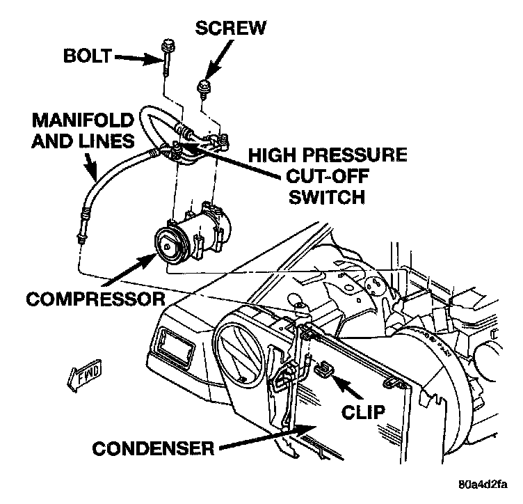The compressor may be removed and repositioned without disconnecting the refrigerant lines or discharging the refrigerant system. Discharging is not necessary if servicing the compressor clutch or clutch coil, the engine, the cylinder head, or the generator.WARNING: REVIEW THE WARNINGS AND CAUTIONS BEFORE PERFORMING THE FOLLOWING OPERATION.