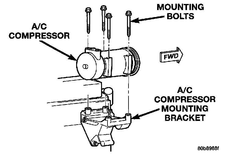 6. Remove the four bolts that secure the compressor to the mounting bracket.