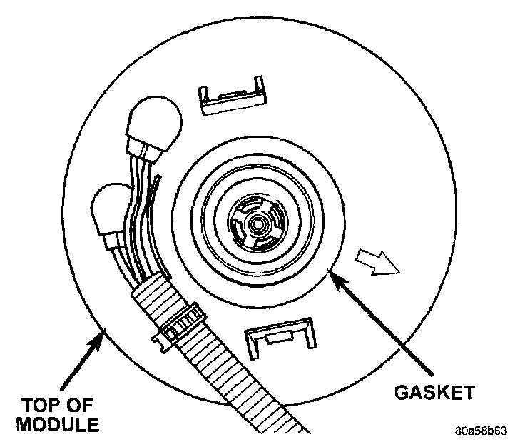 6. The molded arrow on top of fuel pump module should be pointed towards front of vehicle (12 o'clock position).
