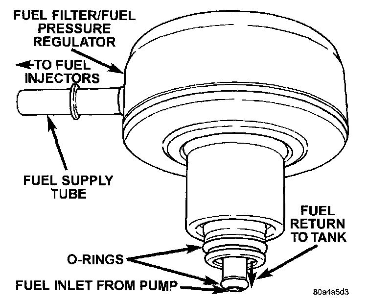 7. Before discarding filter/regulator assembly, inspect assembly to verify that O-rings are intact. If the smallest of the two O-rings can not be found on bottom of filter/regulator, it may be necessary to remove it from the fuel inlet passage in fuel pump module.