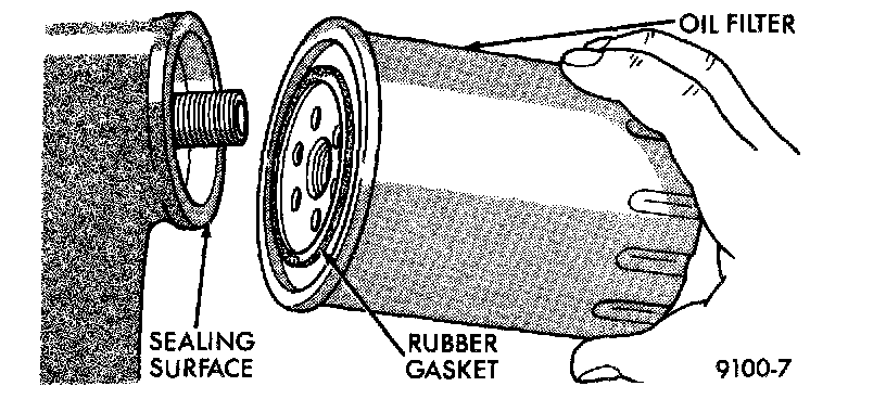 4. When filter separates from adapter nipple, tip gasket end upward to minimize oil spill. Remove filter from vehicle.