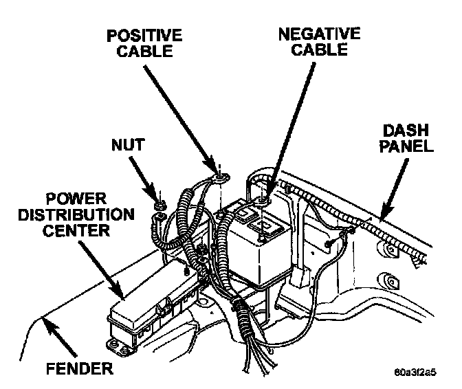 Nut, Positive Cable, Negative Cable, Dash Panel, Fender, Power Distribution Center: