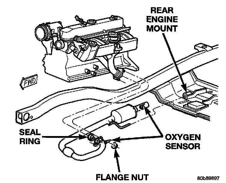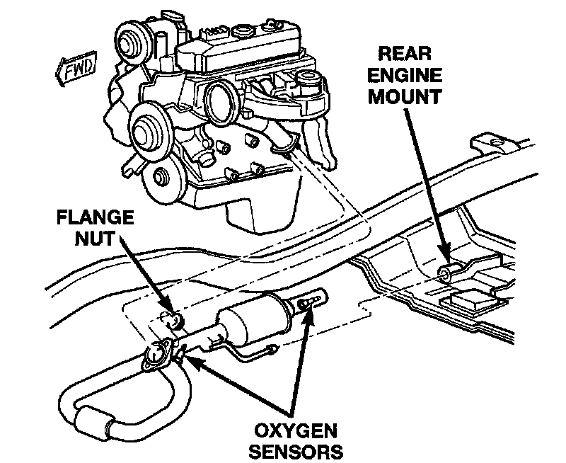 CAUTION: When servicing exhaust system components, disconnect the oxygen sensor connector(s). Allowing the exhaust system to hang by the oxygen sensor harness will damage the wiring and/or sensor.
